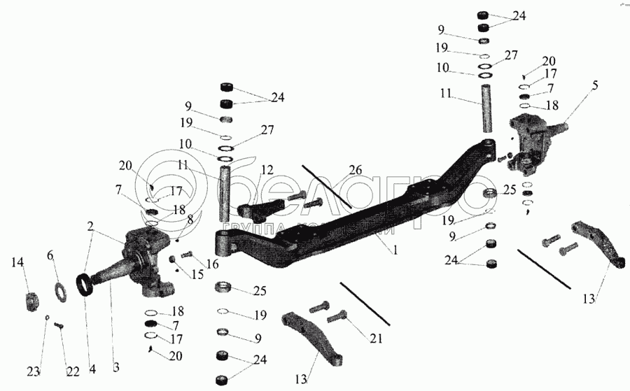 Каталог запасных частей к технике: МАЗ-643068. Балка передней оси