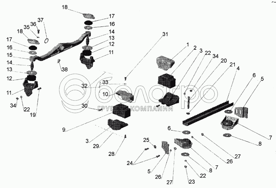 Каталог запасных частей к технике: МАЗ-643068. Крепление двигателя 64301-1001002-020