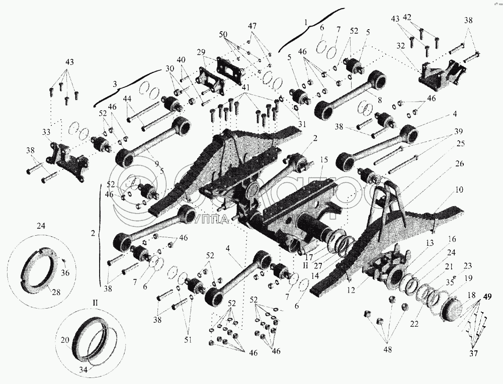 Каталог запасных частей к технике: МАЗ-643068. Подвеска балансирная