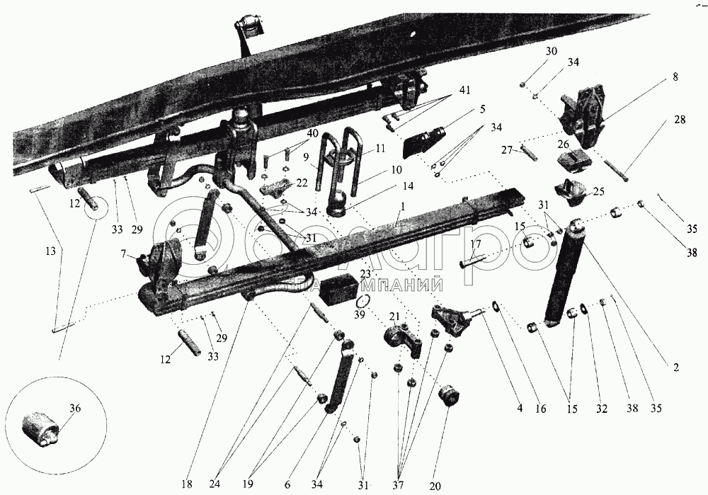 Каталог запасных частей к технике: МАЗ-643068. Подвеска передняя