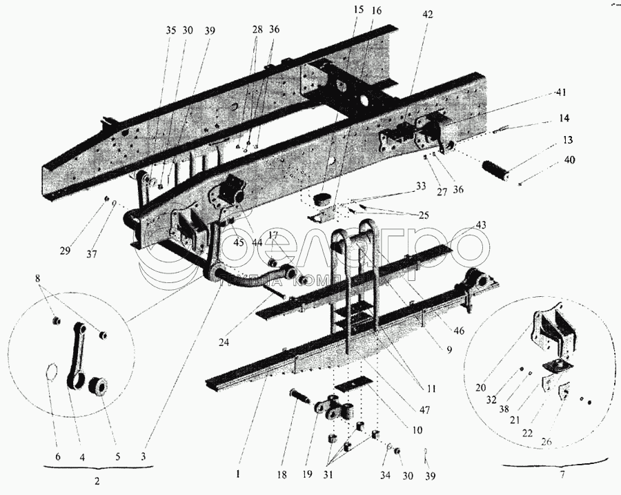 Каталог запасных частей к технике: МАЗ-643068. Подвеска задняя