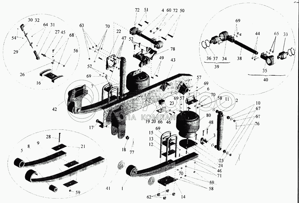 Каталог запасных частей к технике: МАЗ-643068. Подвеска задняя пневматическая
