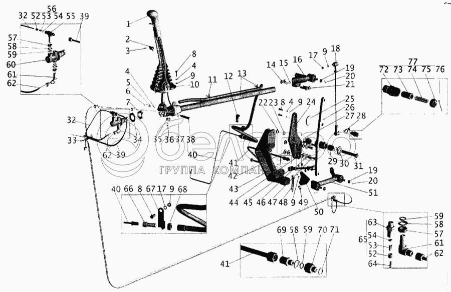 Каталог запасных частей к технике: МАЗ-643068. Привод переключения КП