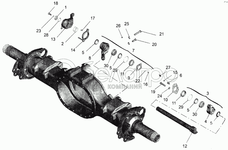 Каталог запасных частей к технике: МАЗ-643068. Привод тормозного механизма задних колес