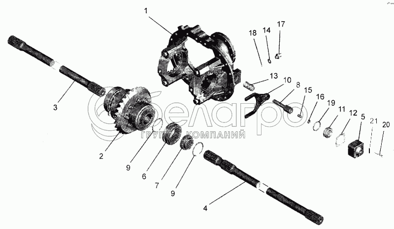 Каталог запасных частей к технике: МАЗ-643068. Редуктор среднего моста. Межколесная блокировка дифференциала