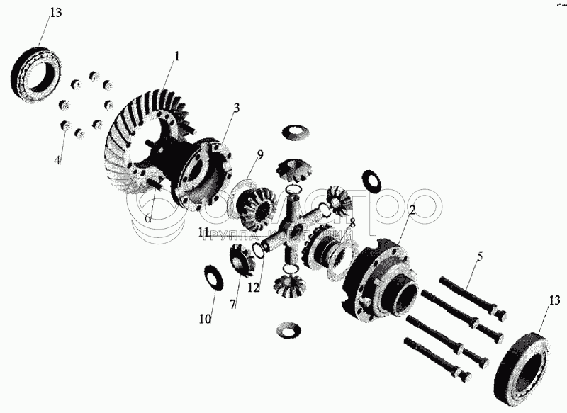 Каталог запасных частей к технике: МАЗ-643068. Редуктор заднего моста. Дифференциал