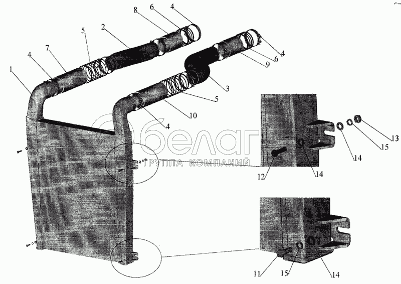 Каталог запасных частей к технике: МАЗ-643068. Система охлаждения наддувочного воздуха
