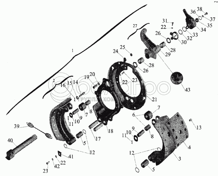 Каталог запасных частей к технике: МАЗ-643068. Тормозной механизм передних колес