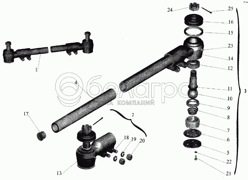 Каталог запасных частей к технике: МАЗ-643068. Тяга поперечная рулевая