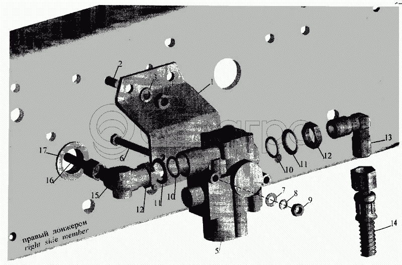 Каталог запасных частей к технике: МАЗ-643068. Установка передних модуляторов и присоединительной арматуры