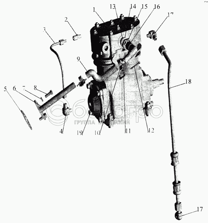 Каталог запасных частей к технике: МАЗ-643068. Установка пневмокомпрессора