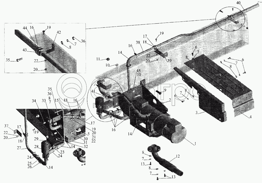 Каталог запасных частей к технике: МАЗ-643068. Установка подогревателя