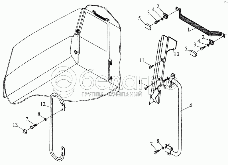 Каталог запасных частей к технике: МАЗ-643068. Установка поручней в кабине