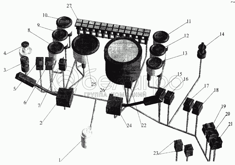 Расположение элементов электронных систем в кабине автомобилей семейства МАЗ-544020/643068