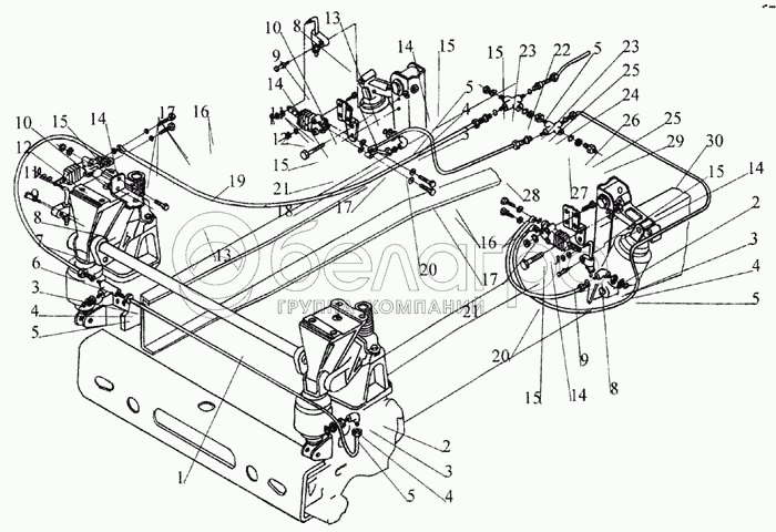 Каталог запасных частей к технике: МАЗ-643068. Установка регуляторов положения кабины