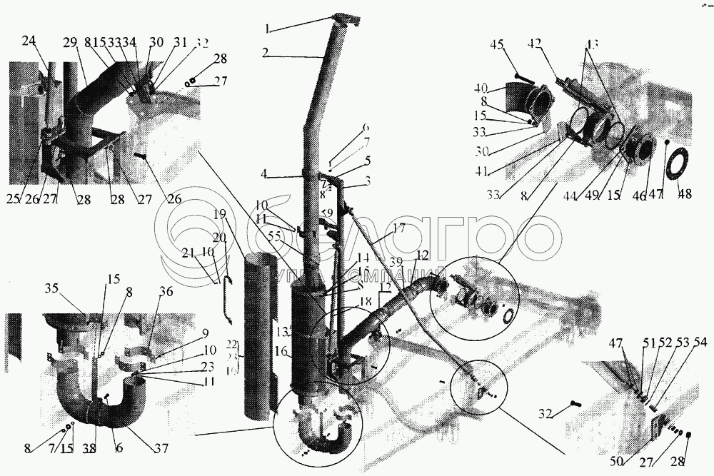 Каталог запасных частей к технике: МАЗ-643068. Установка системы выпуска