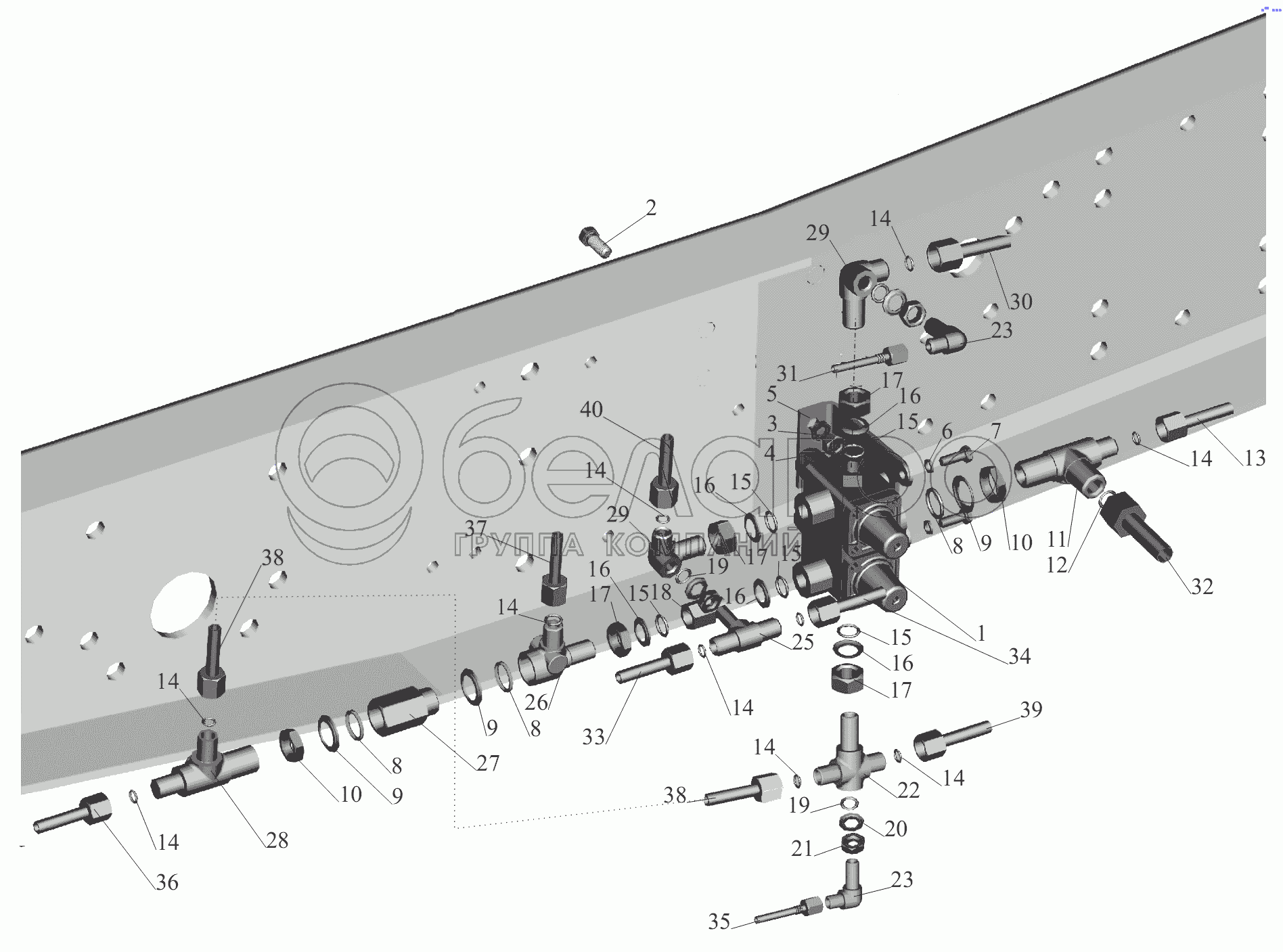 Каталог запасных частей к технике: МАЗ-6430A8 (5440A8, 5440A5). Крепление четырехконтурного клапана 6430-3515002