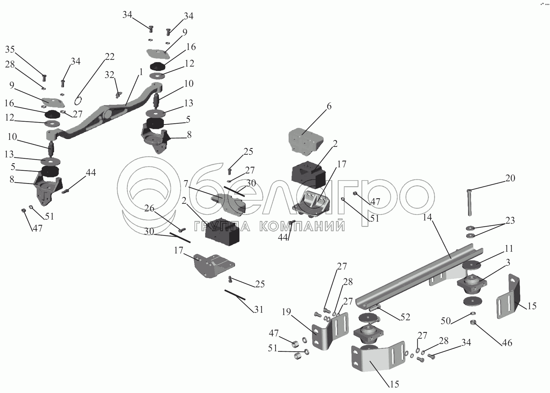 Каталог запасных частей к технике: МАЗ-6430A8 (5440A8, 5440A5). Крепление двигателя