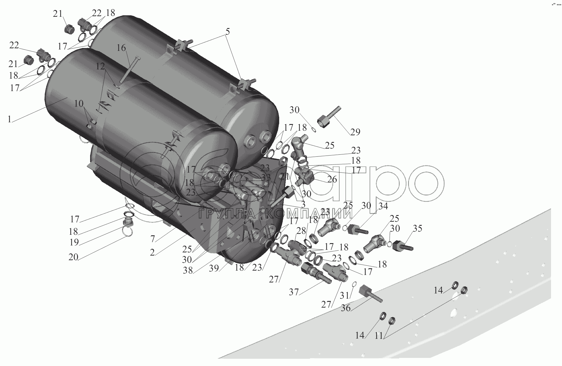 Каталог запасных частей к технике: МАЗ-6430A8 (5440A8, 5440A5). Крепление ресиверов 643020-3513005