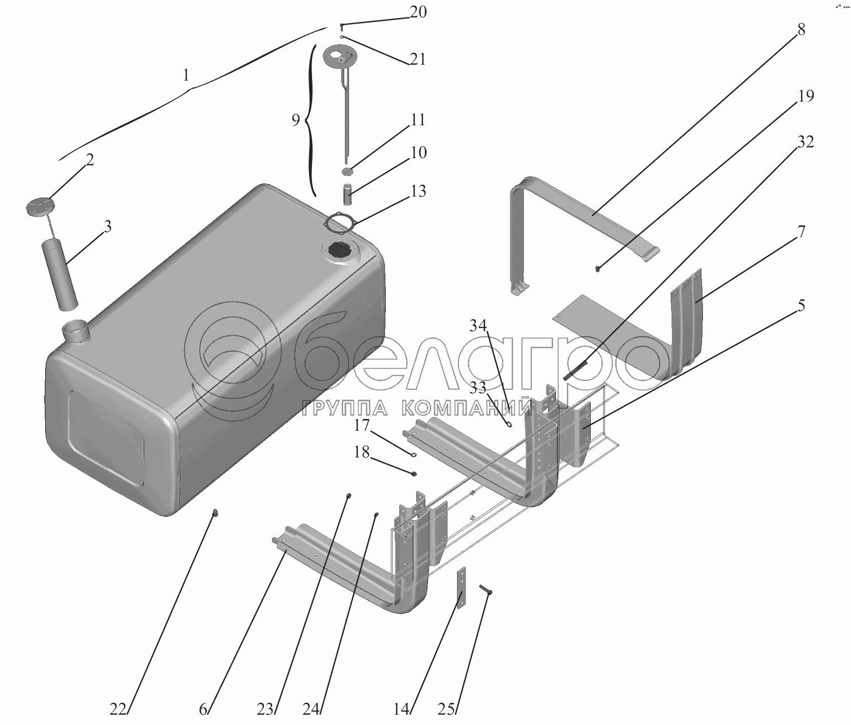Каталог запасных частей к технике: МАЗ-6430A8 (5440A8, 5440A5). Крепление топливного бака 6430-1101002