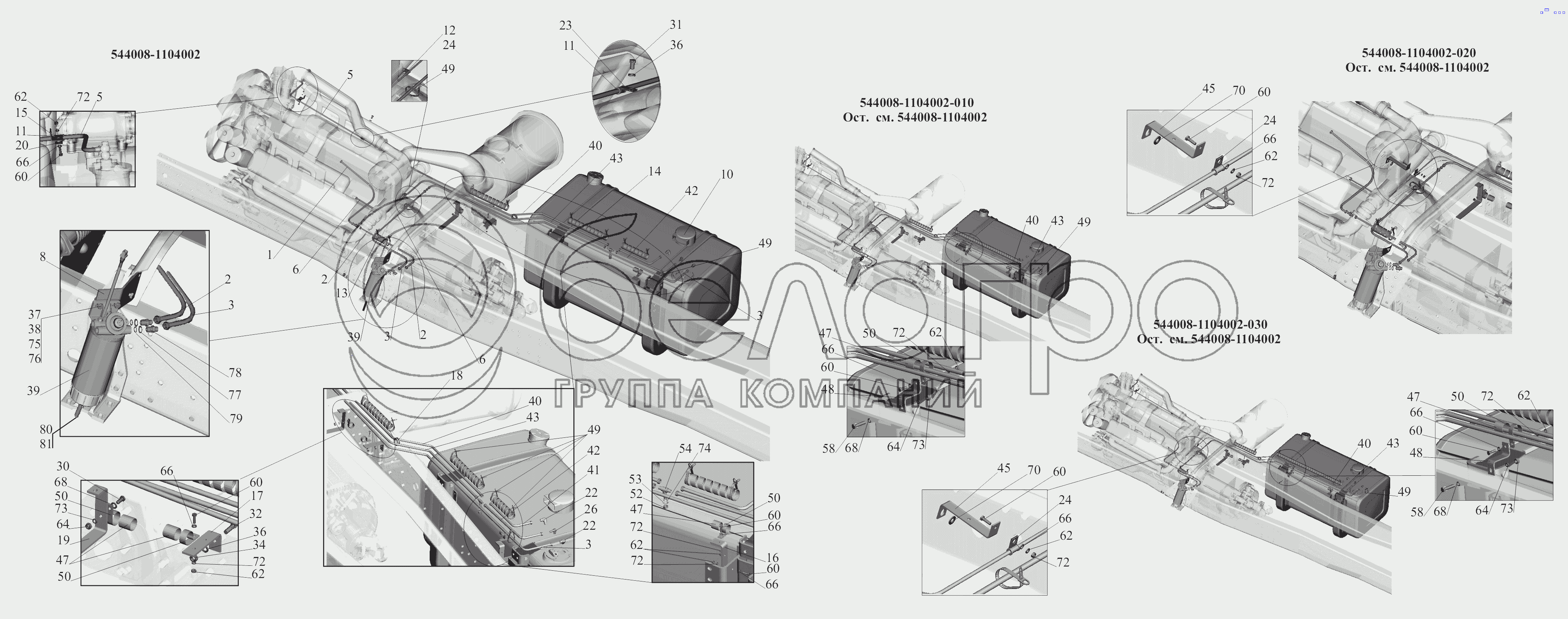 Каталог запасных частей к технике: МАЗ-6430A8 (5440A8, 5440A5). Крепление топливопроводов
