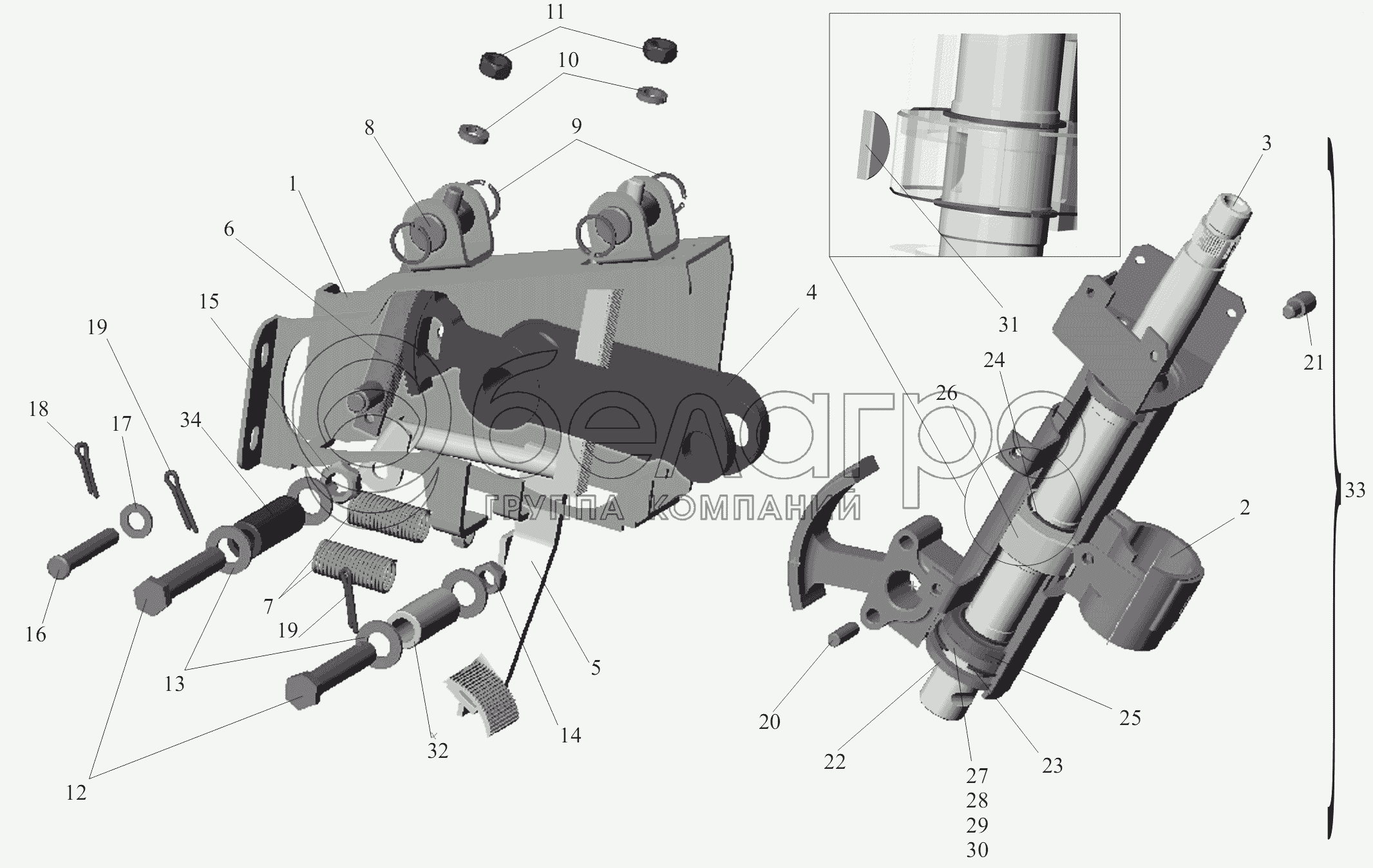 Каталог запасных частей к технике: МАЗ-6430A8 (5440A8, 5440A5). Кронштейн с колонкой 5440-3403008