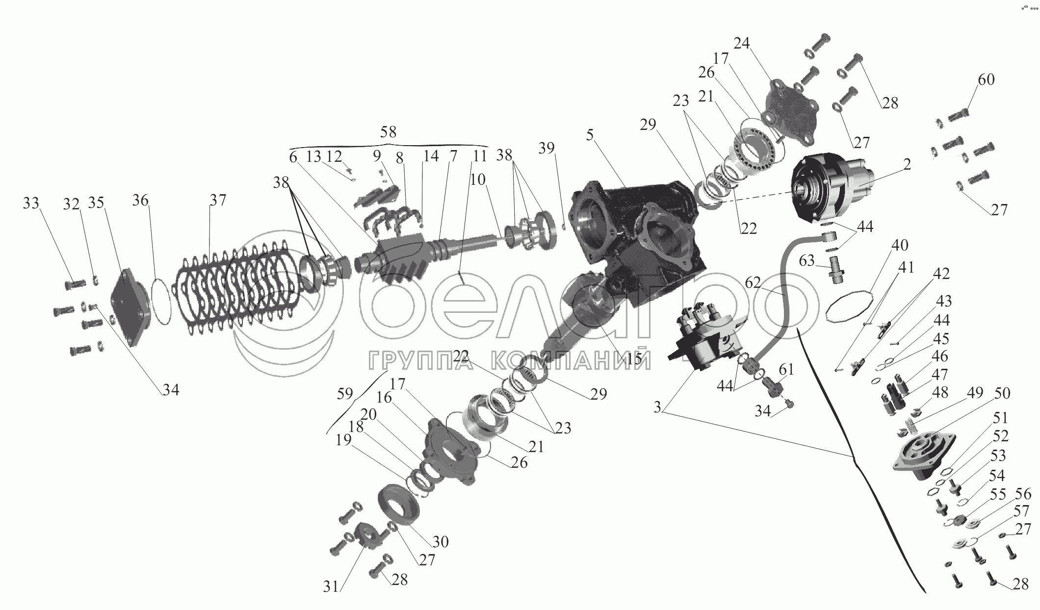 Каталог запасных частей к технике: МАЗ-6430A8 (5440A8, 5440A5). Механизм рулевой 64221-3400010-10