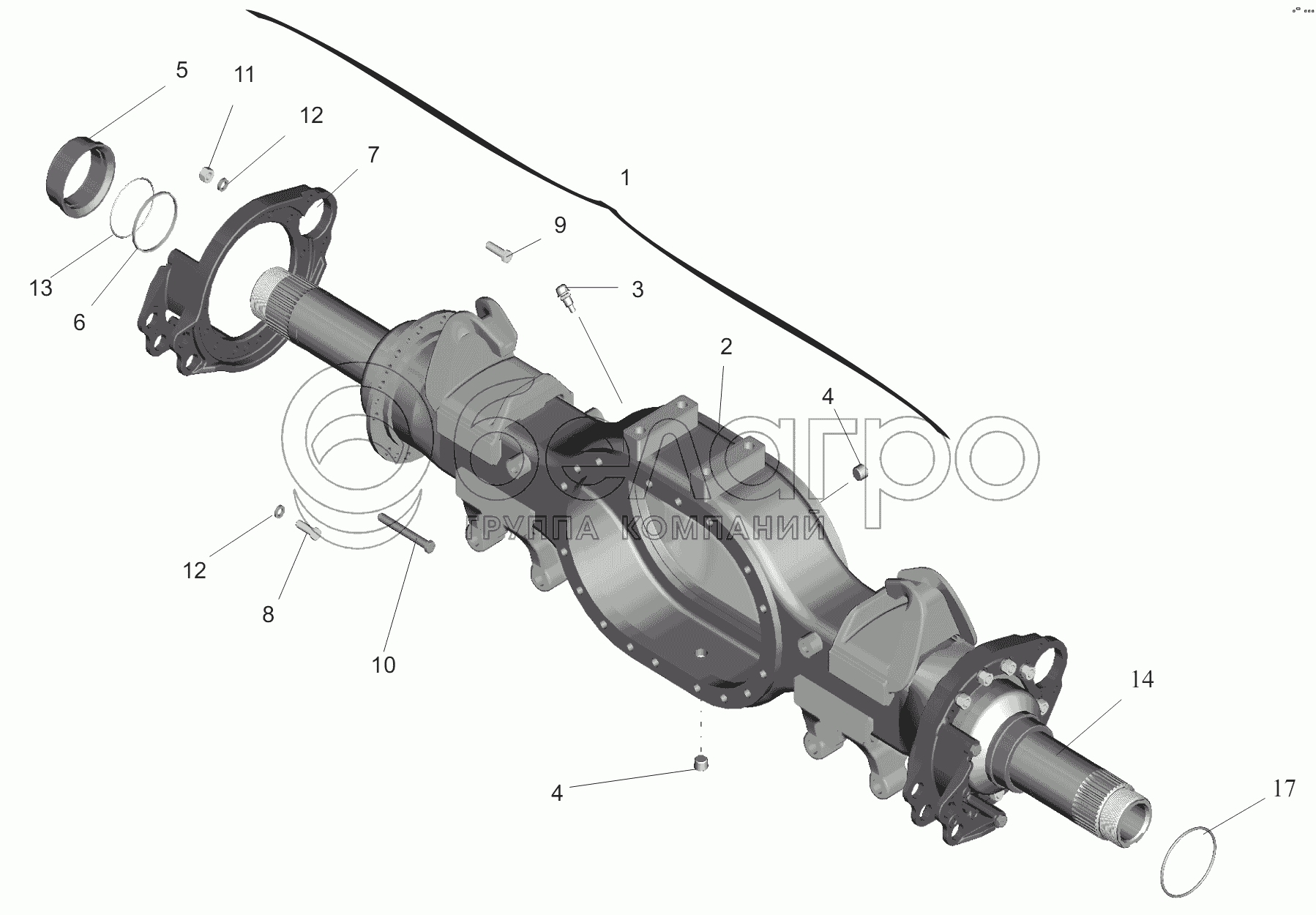 Каталог запасных частей к технике: МАЗ-6430A8 (5440A8, 5440A5). Мост задний. Картер моста