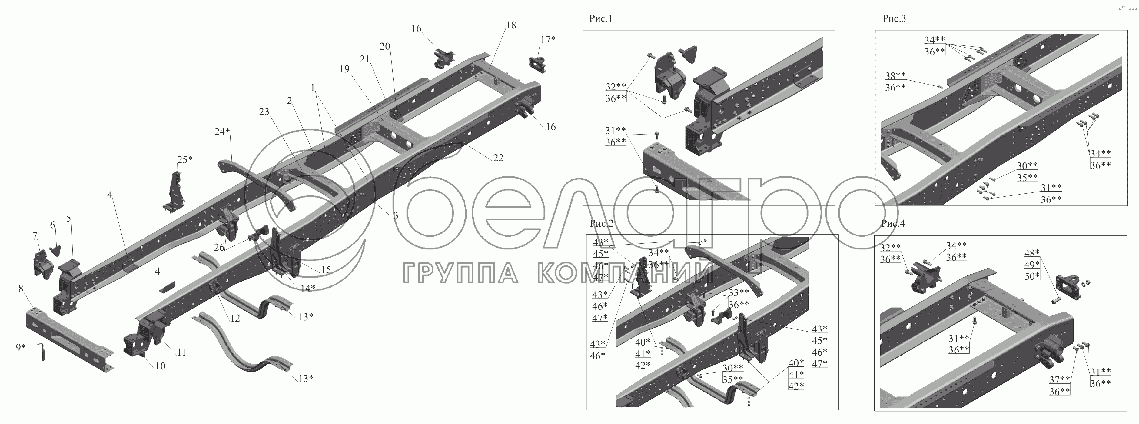 Каталог запасных частей к технике: МАЗ-6430A8 (5440A8, 5440A5). Рамы 5440-2801002-031