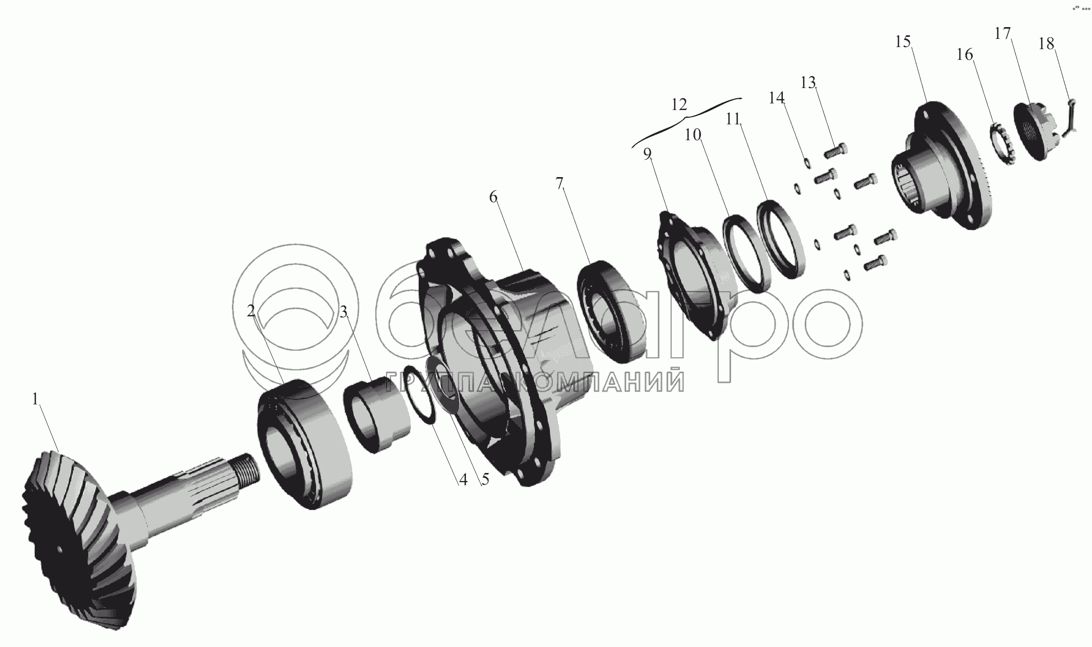Каталог запасных частей к технике: МАЗ-6430A8 (5440A8, 5440A5). Шестерня ведущая 5440-2402021-002