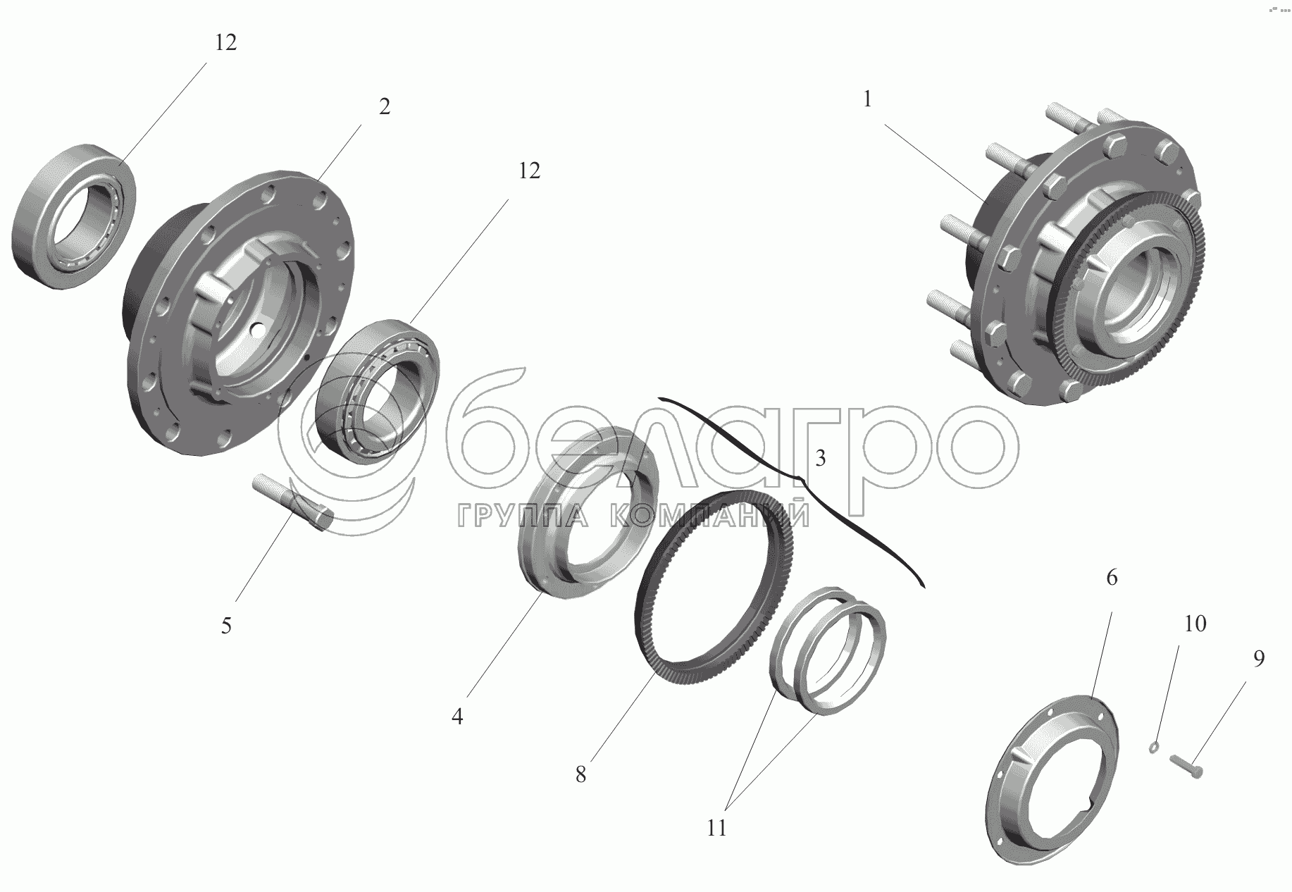 Каталог запасных частей к технике: МАЗ-6430A8 (5440A8, 5440A5). Ступица заднего моста