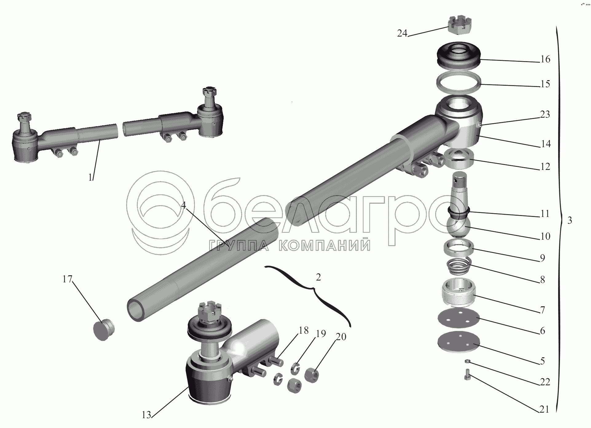Каталог запасных частей к технике: МАЗ-6430A8 (5440A8, 5440A5). Тяга поперечная рулевая 64221-3003052