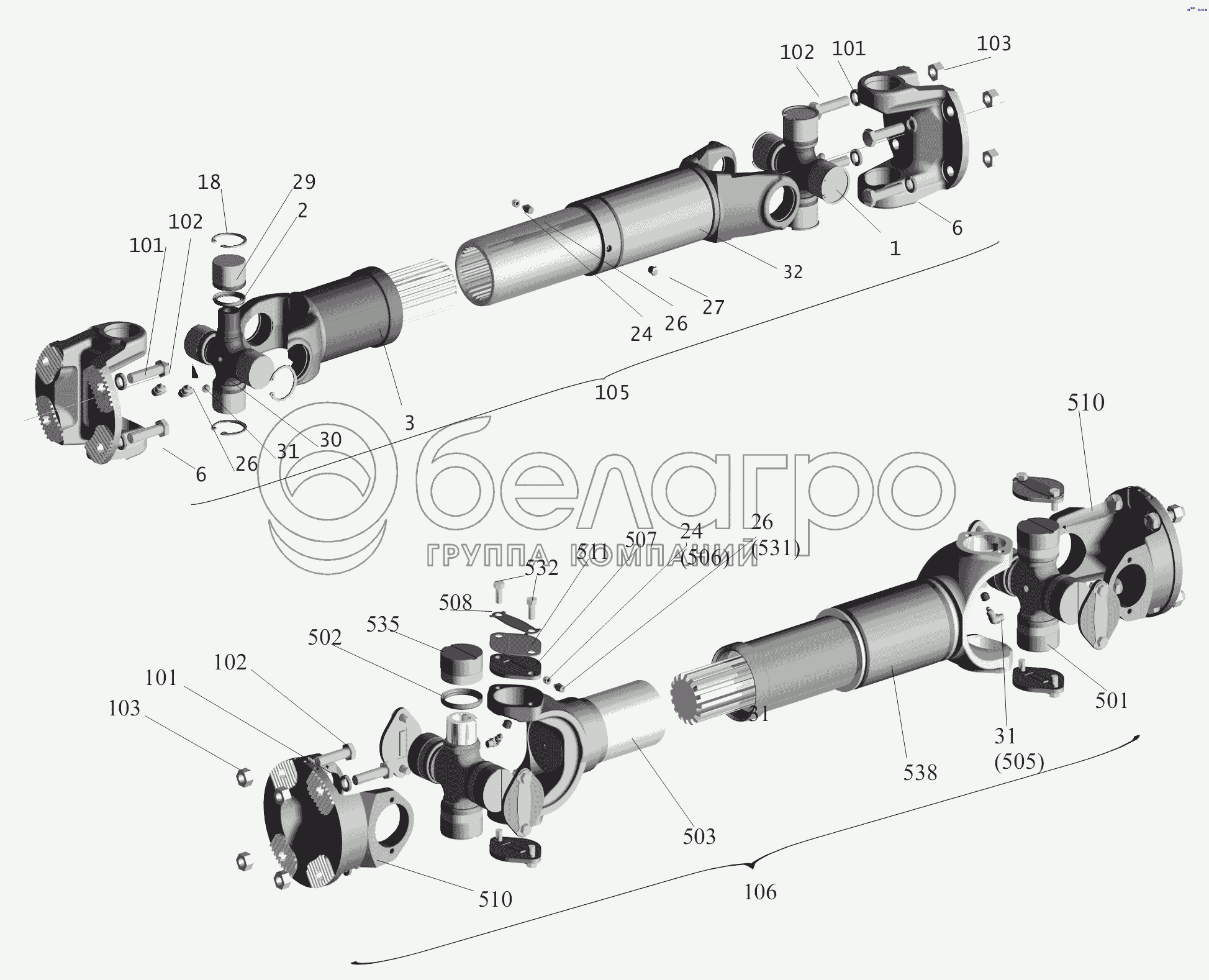 Каталог запасных частей к технике: МАЗ-6430A8 (5440A8, 5440A5). Установка карданных валов