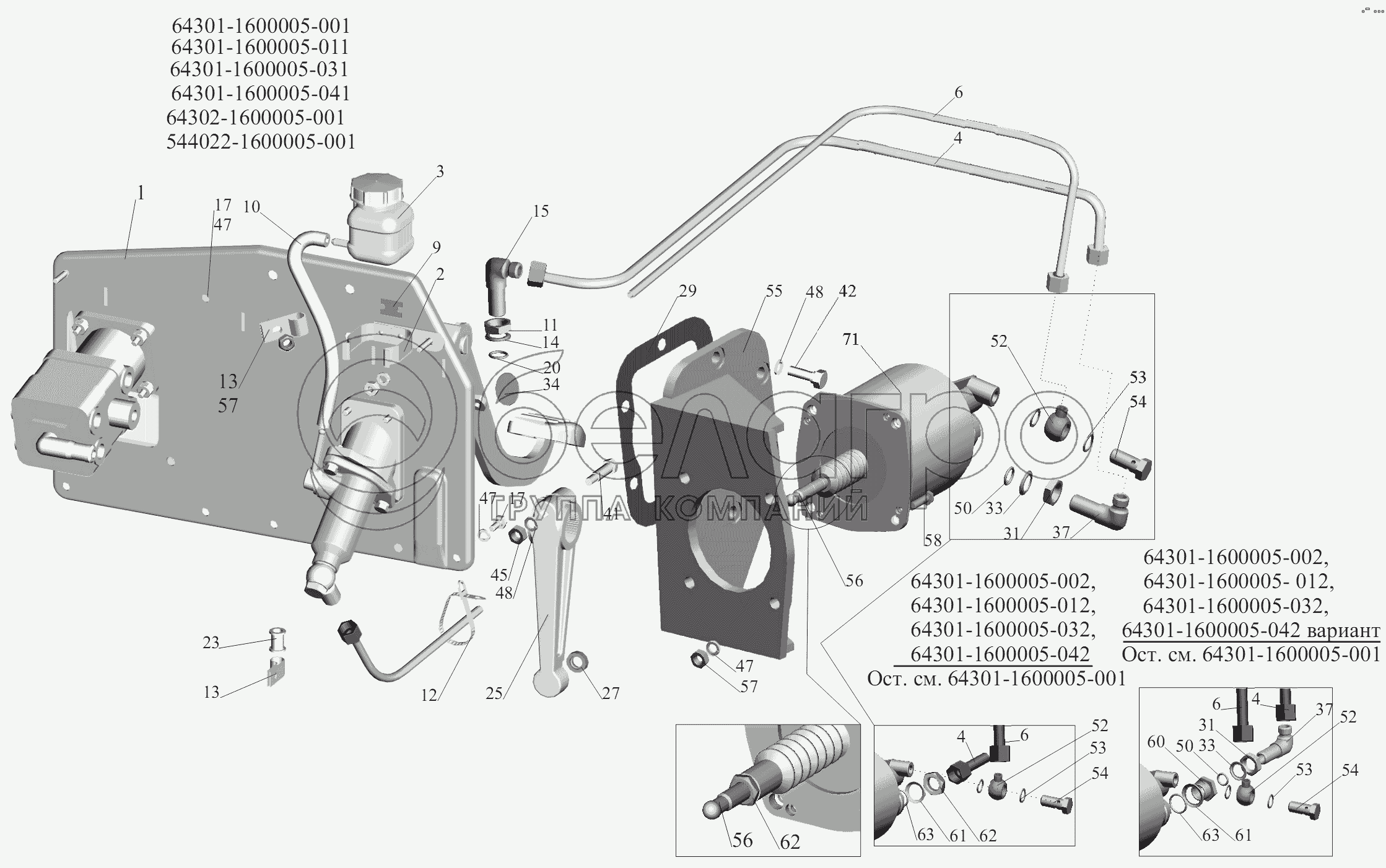 Каталог запасных частей к технике: МАЗ-6430A8 (5440A8, 5440A5). Установка механизма управления сцеплением