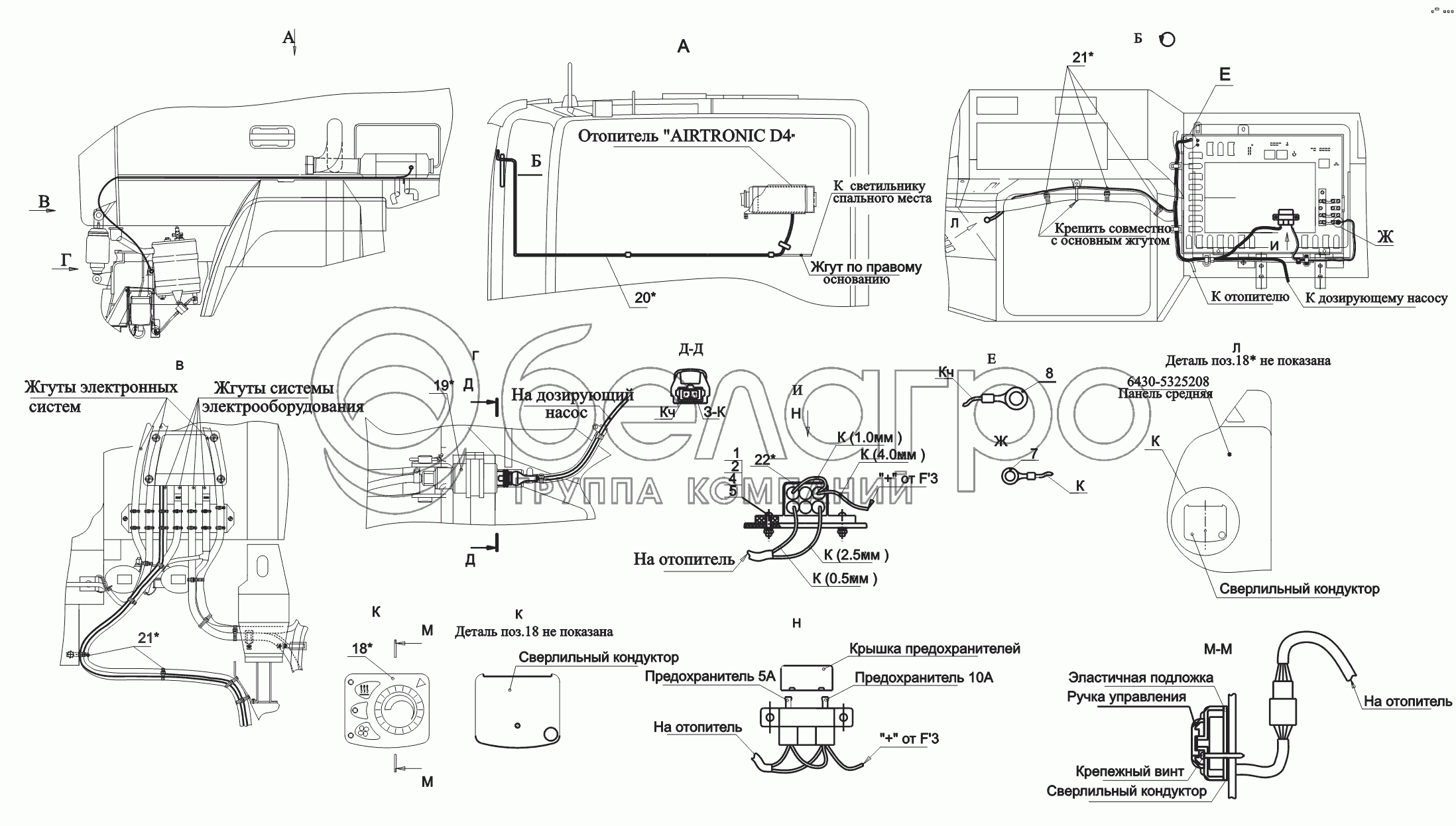 Каталог запасных частей к технике: МАЗ-6430A8 (5440A8, 5440A5). Установка независимого отопителя 6430-3700088