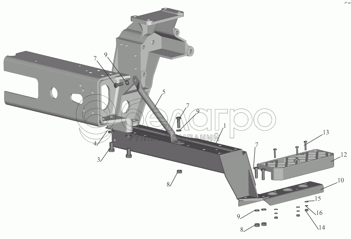 Каталог запасных частей к технике: МАЗ-6430A8 (5440A8, 5440A5). Установка нижней подножки 544008-8400016
