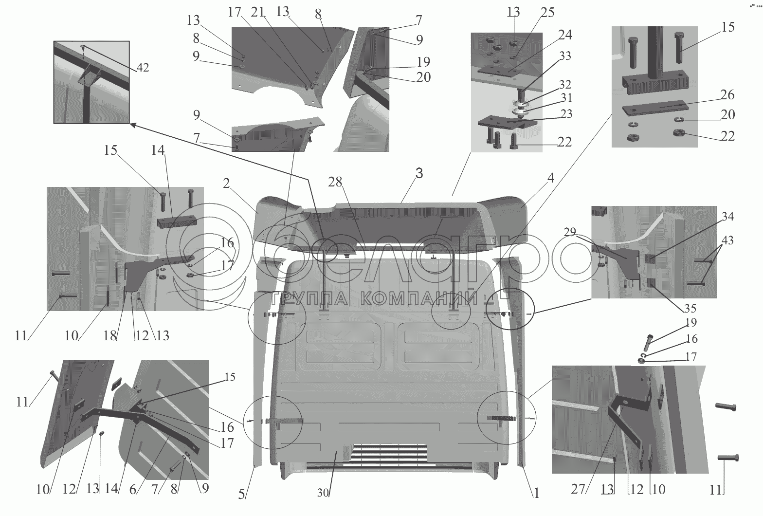 Каталог запасных частей к технике: МАЗ-6430A8 (5440A8, 5440A5). Установка обтекателя и закрылков