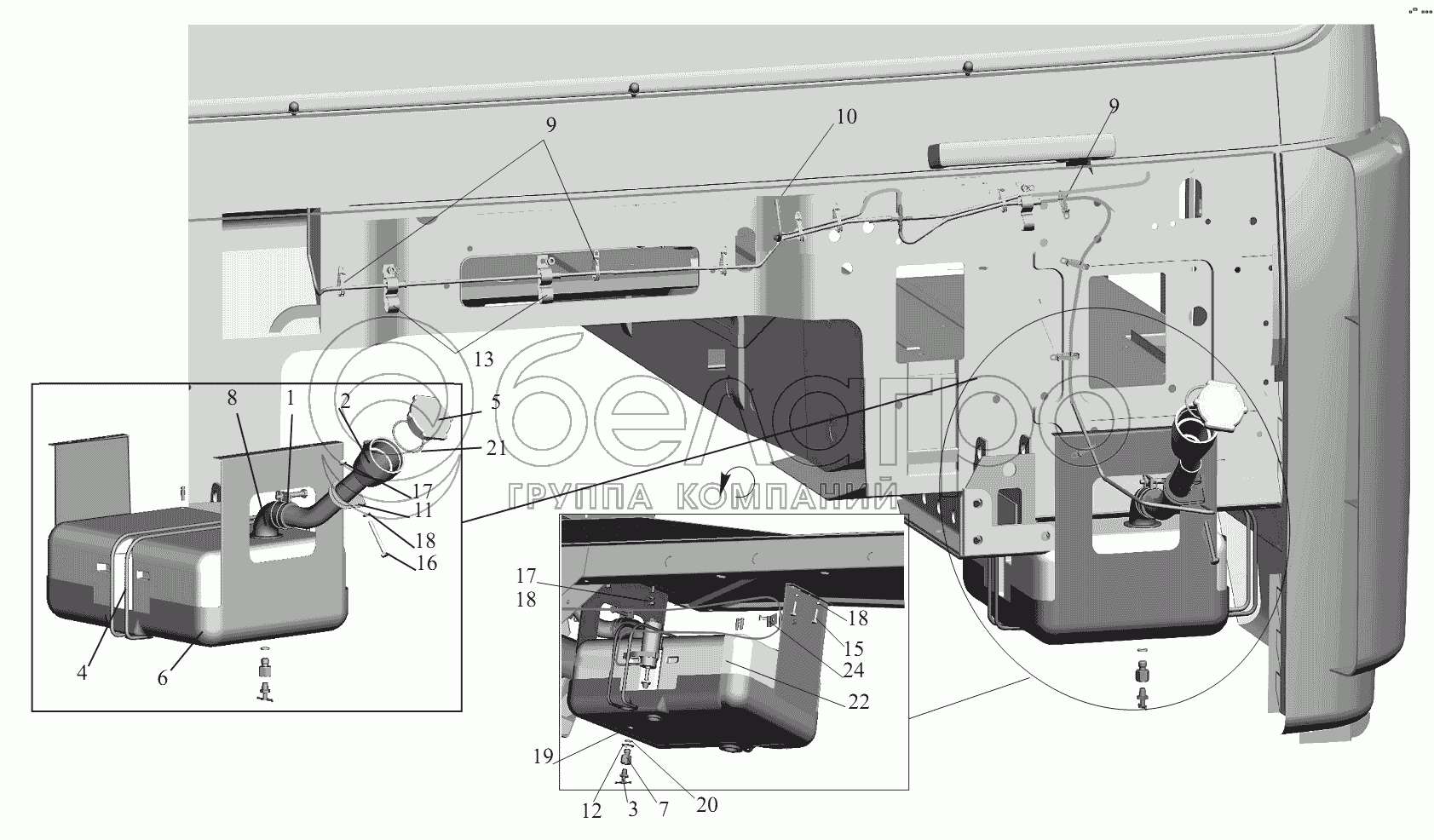 Каталог запасных частей к технике: МАЗ-6430A8 (5440A8, 5440A5). Установка омывателя 6430-5200008