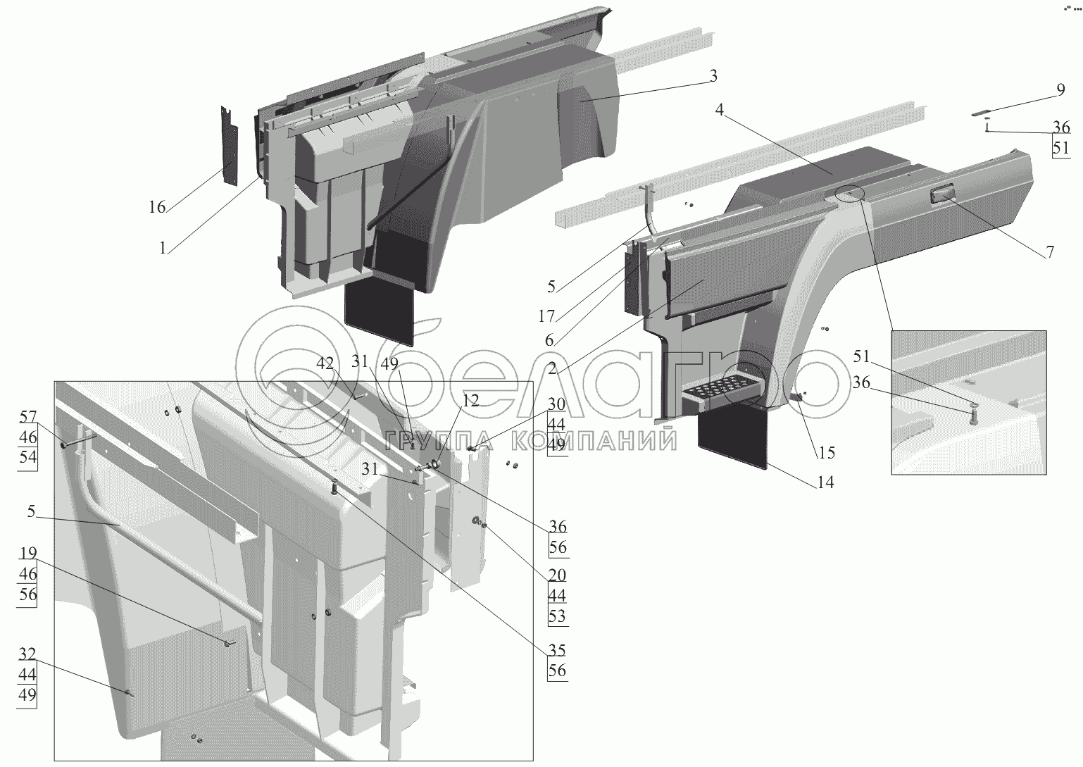 Каталог запасных частей к технике: МАЗ-6430A8 (5440A8, 5440A5). Установка оперения