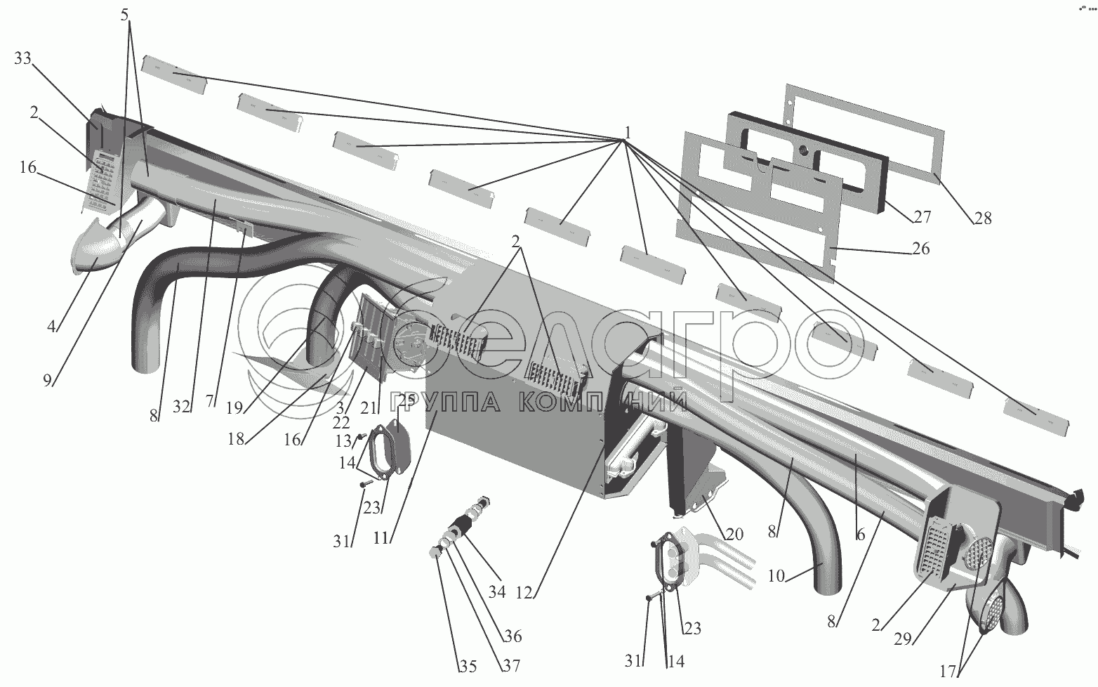 Каталог запасных частей к технике: МАЗ-6430A8 (5440A8, 5440A5). Установка отопителя 6430-8100001