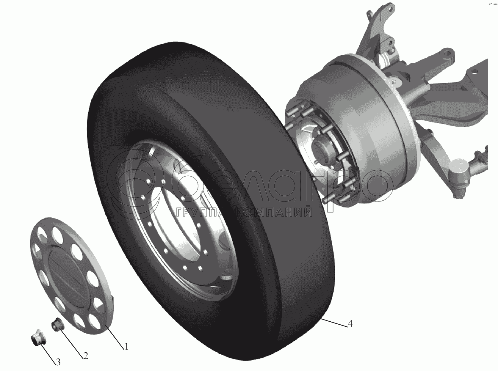 Каталог запасных частей к технике: МАЗ-6430A8 (5440A8, 5440A5). Установка передних колес