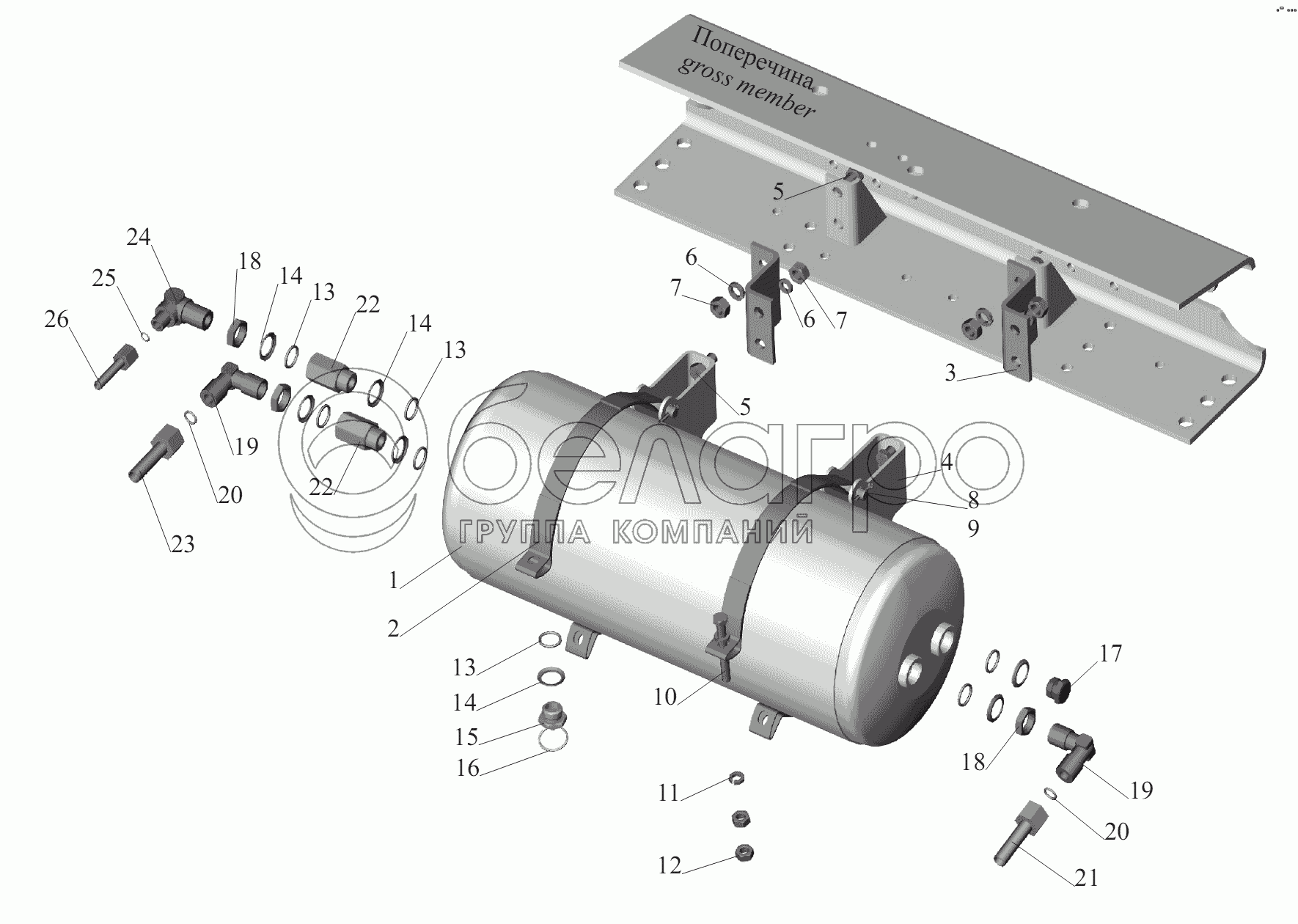 Каталог запасных частей к технике: МАЗ-6430A8 (5440A8, 5440A5). Установка ресивера 54401-3513007