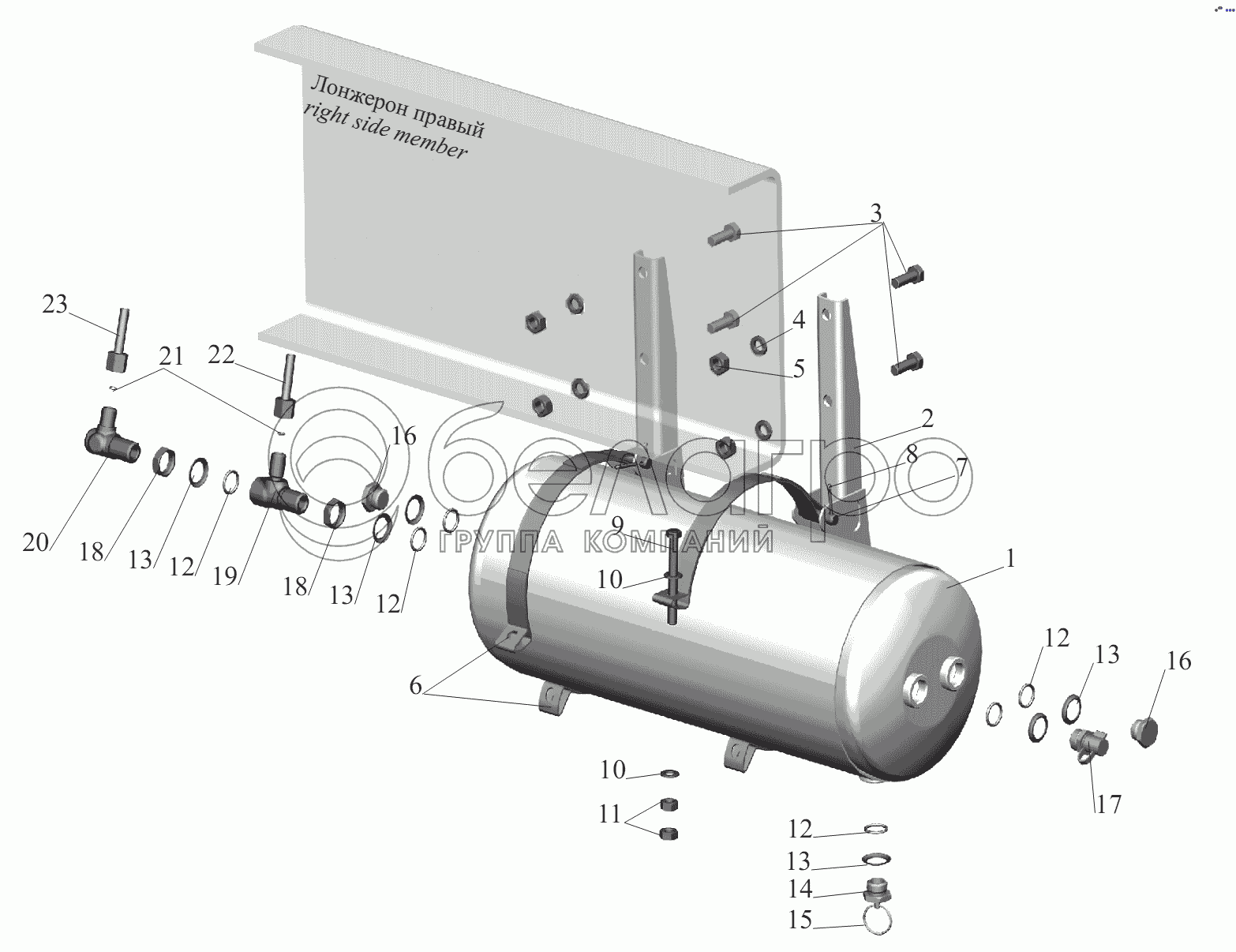 Каталог запасных частей к технике: МАЗ-6430A8 (5440A8, 5440A5). Установка ресивера 643026-3513006