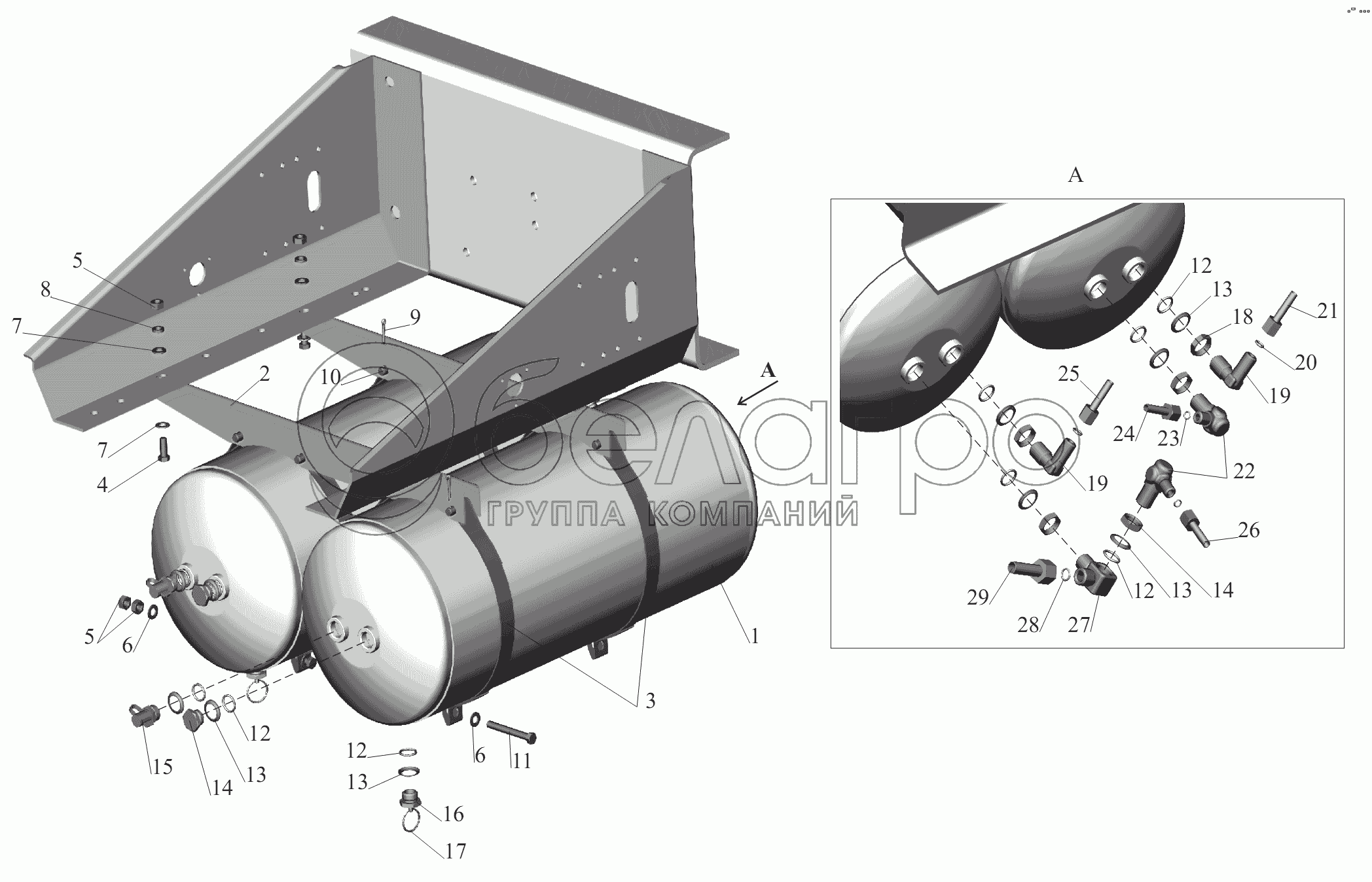 Каталог запасных частей к технике: МАЗ-6430A8 (5440A8, 5440A5). Установка ресиверов 643020-3513004