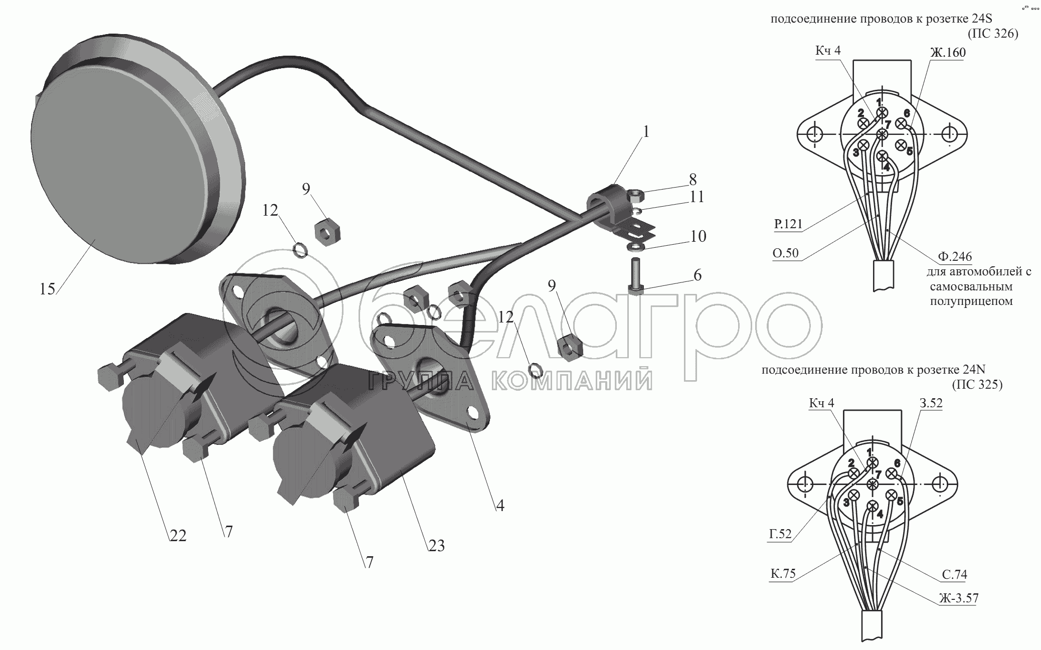 Каталог запасных частей к технике: МАЗ-6430A8 (5440A8, 5440A5). Установка штепсельных розеток 6430-3700015