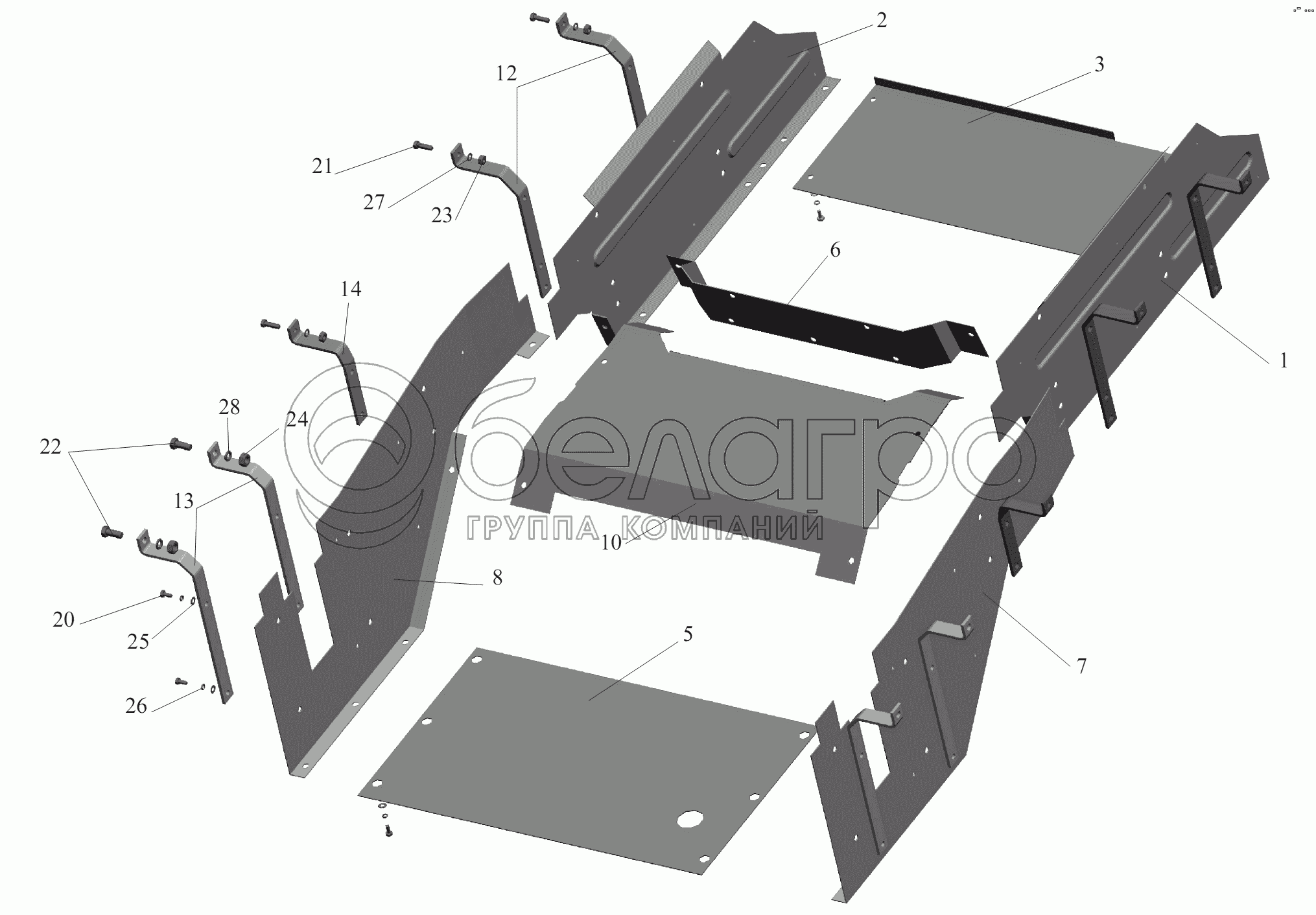 Каталог запасных частей к технике: МАЗ-6430A8 (5440A8, 5440A5). Установка шумоизоляционных экранов 544008-1061004