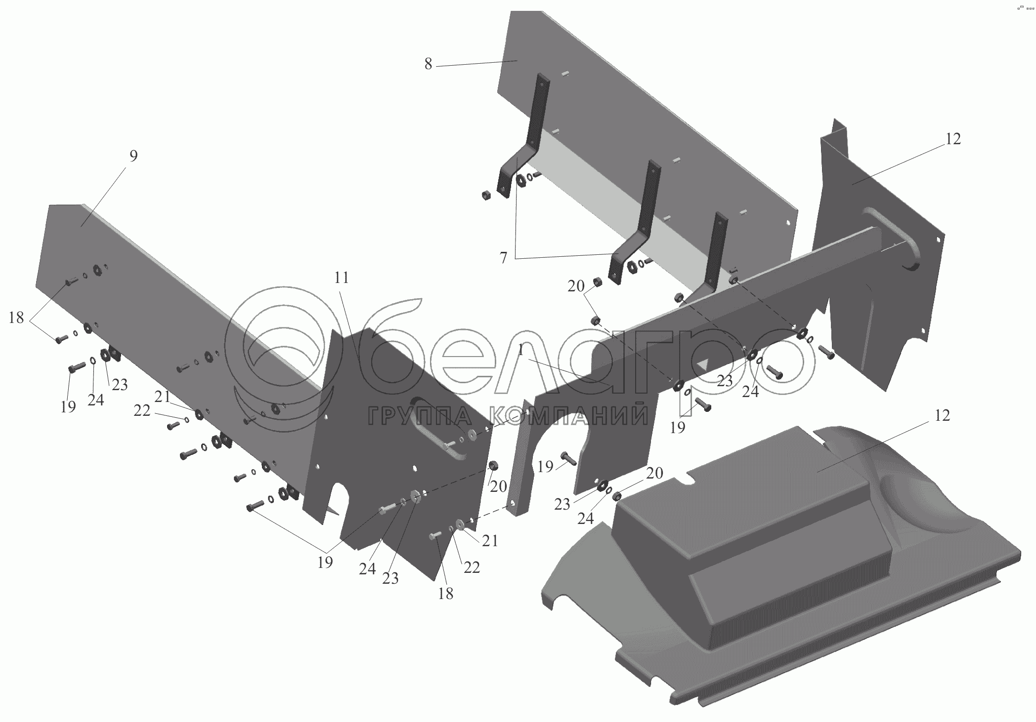 Каталог запасных частей к технике: МАЗ-6430A8 (5440A8, 5440A5). Установка шумоизоляционных экранов 5440A8-1061003
