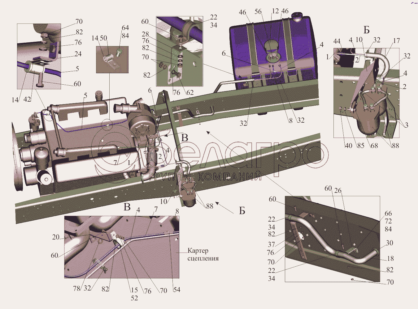 Каталог запасных частей к технике: МАЗ-650108. Крепление топливопроводов 650108-1104002-030