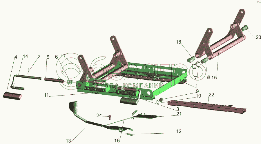 Каталог запасных частей к технике: МАЗ-650108. Механизм регулирования высоты