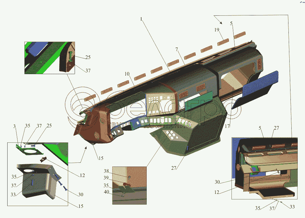 Каталог запасных частей к технике: МАЗ-650108. Панель приборов 6430-5300014-020